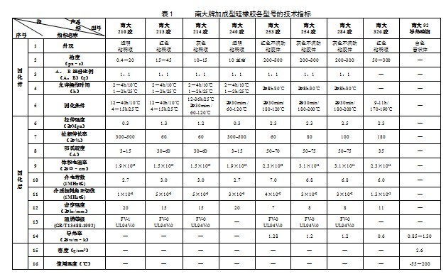 南大牌200系列加成型ARC膠主要品種介紹